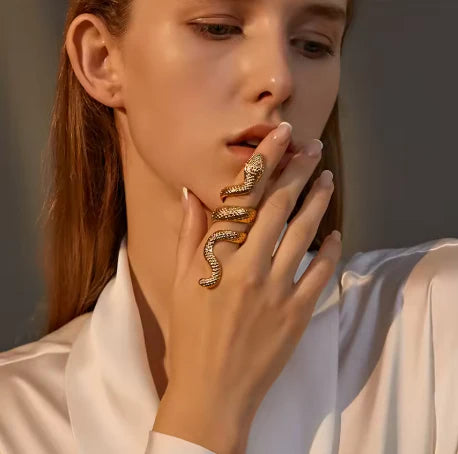 Do you gravitate toward bold, unforgettable jewelry? If yes, this ring is the piece you've been waiting for. Designed to stand out, it wraps your finger in symbolism and style—perfect for channeling confidence, mystery, and a hint of rebellious glamour. Don’t miss the chance to make it yours.